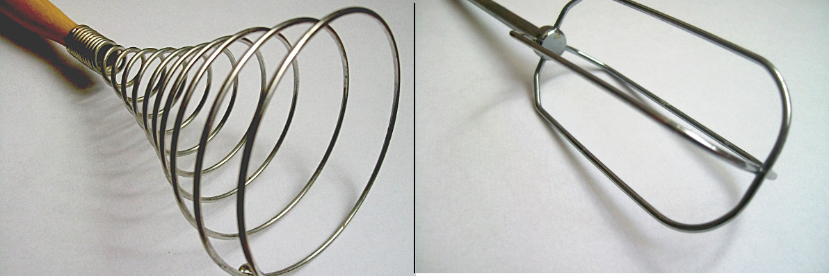 Po lewej trzepaczka sprężynowa, po prawej tradycyjna końcówka do miksera |