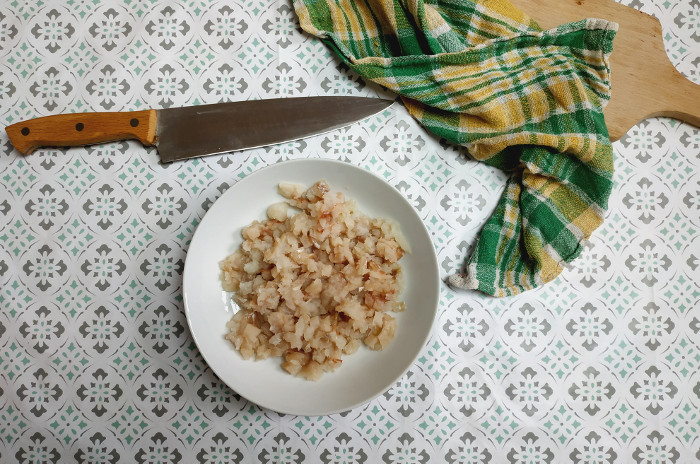 1.  Filety z ryby umyj, a następnie drobno posiekaj.