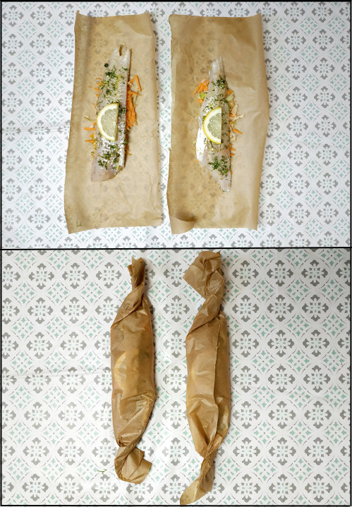11. Rybę w papilotach piecz w 180°C ok. 30-40 minut. Podawaj razem z dodatkami z którymi się piekła.