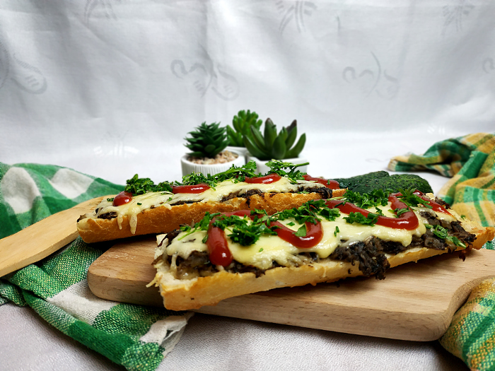 Tradycyjne zapiekanki z pieczarkami i żółtym serem