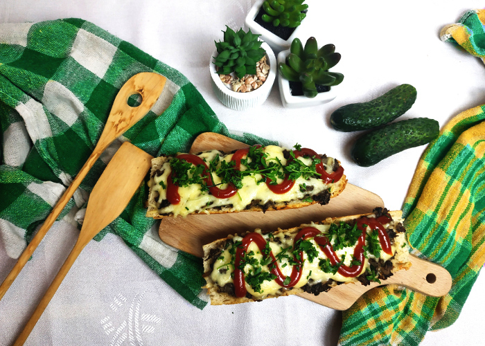 W mojej kuchni staram się czerpać z tak wielu źródeł jak to możliwe. Obok kuchni całego świata, które są niezwykle ciekawe i inspirujące sięgam również po stare polskie przepisy. Staram się również przemycać pewne elementy charakterystyczne dla polskiej kultury. Na przykład „kryształy” w których czasami serwuje potrawy tak jak wegańską kaszę manną podałam w kryształowych filiżankach. Stwierdziłam więc, że na blogu nie mógł nie pojawić się przepis na nasz polski fast food czyli na tradycyjne zapiekanki z pieczarkami i żółtym serem.
